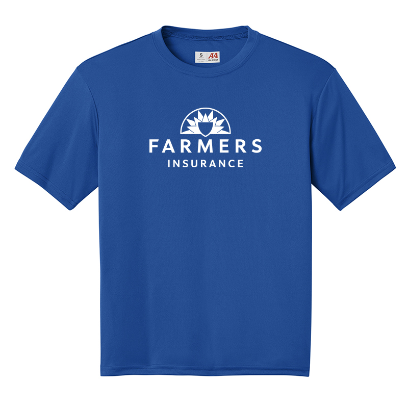 4 oz., 100% performance polyester interlock. Stain- and odor-resistant. Ultra tight knit resists snagging. Moisture management wicks away perspiration from the skin. The moisture evaporates quickly from the fabric surface. Farmers Logo Imprinted in 1 color on the front.